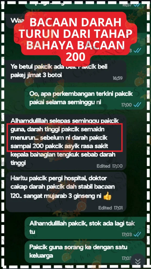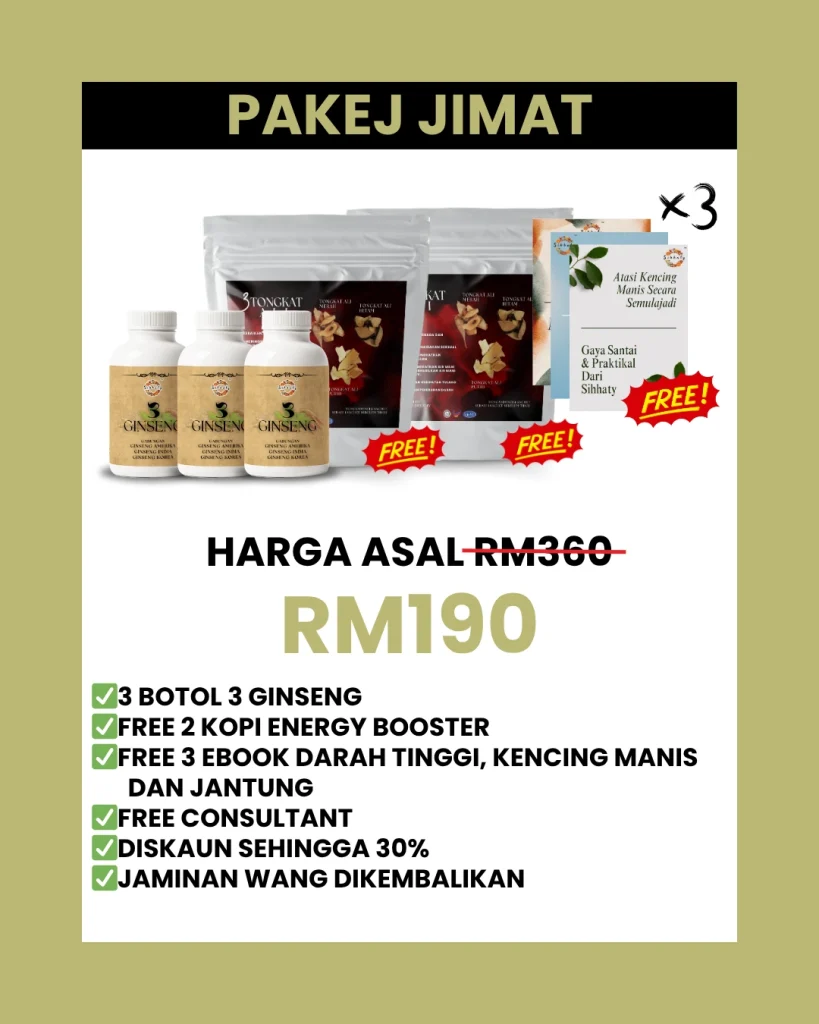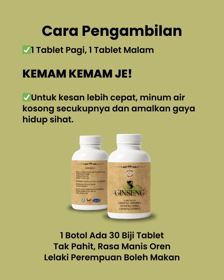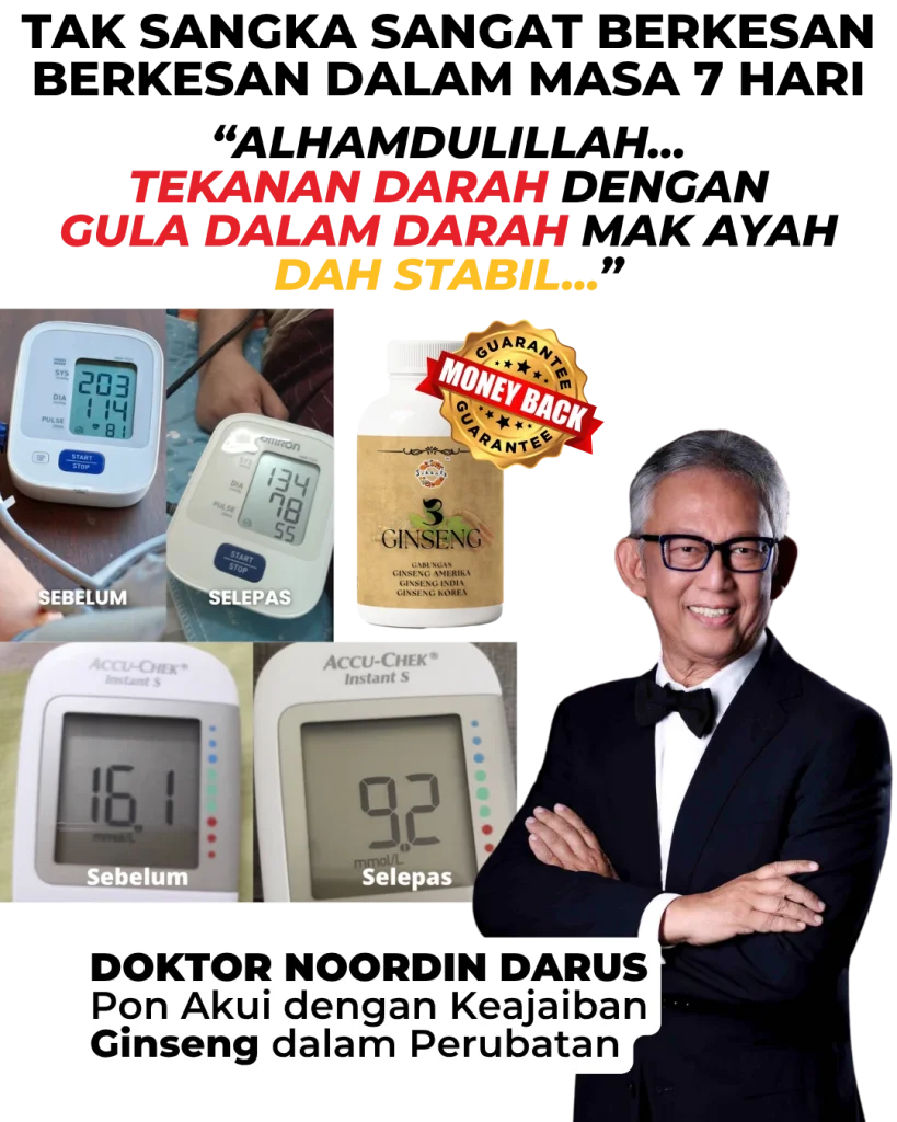 KETIGA :Bagi peluang kat diri sendiri cuba 3 GINSENG PREMIUM sekarang! Herba TERBAIK dunia — Korea, India & Amerika — bukan gred biasa. Amalkan 1 tablet sehari, ramai dah TERBUKTI bacaan turun mendadak. Gula makin stabil, tekanan darah turun, jantung makin kuat. Tak percaya? Ramai dah rasa kesan seawal 7 HARI!